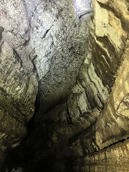 At Ape Cave, we parked in the overflow lot, mostly because it comes first. We walked a couple hundred yards up a soggy trail to the stone steps down into Ape Cave. The younger Benedicts went the 3/4 mile down the easier lower end of the cave, then started back up through the more difficult upper end. When they reached a place that required crawling over boulders, they turned around. By the time Bruce and I started down, the only other members of our group that we met were Duane Benedict and his son's father-in-law. The only reason I recognized them was their long narrow flashlights.